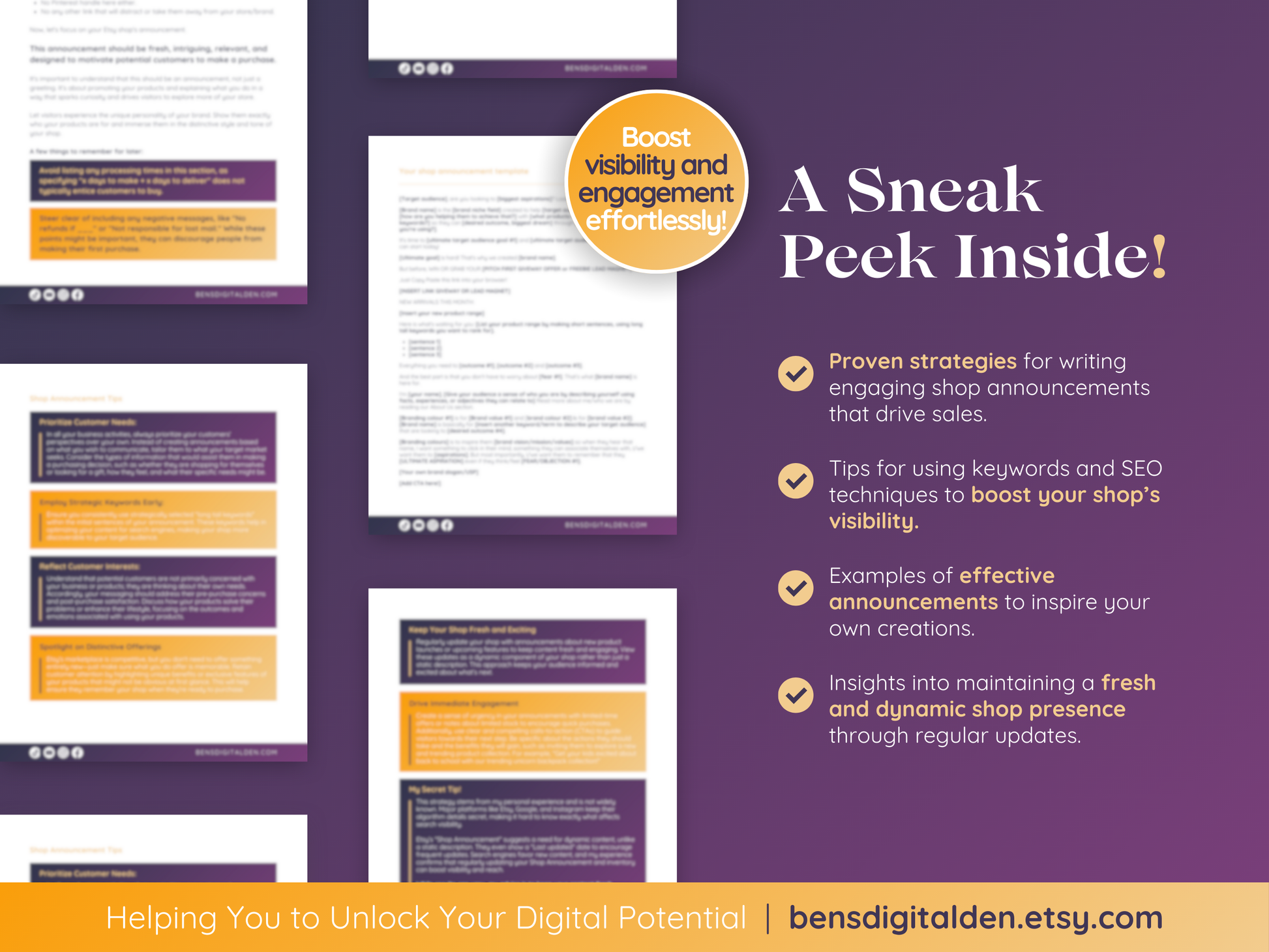 - Proven strategies for writing engaging shop announcements that drive sales.