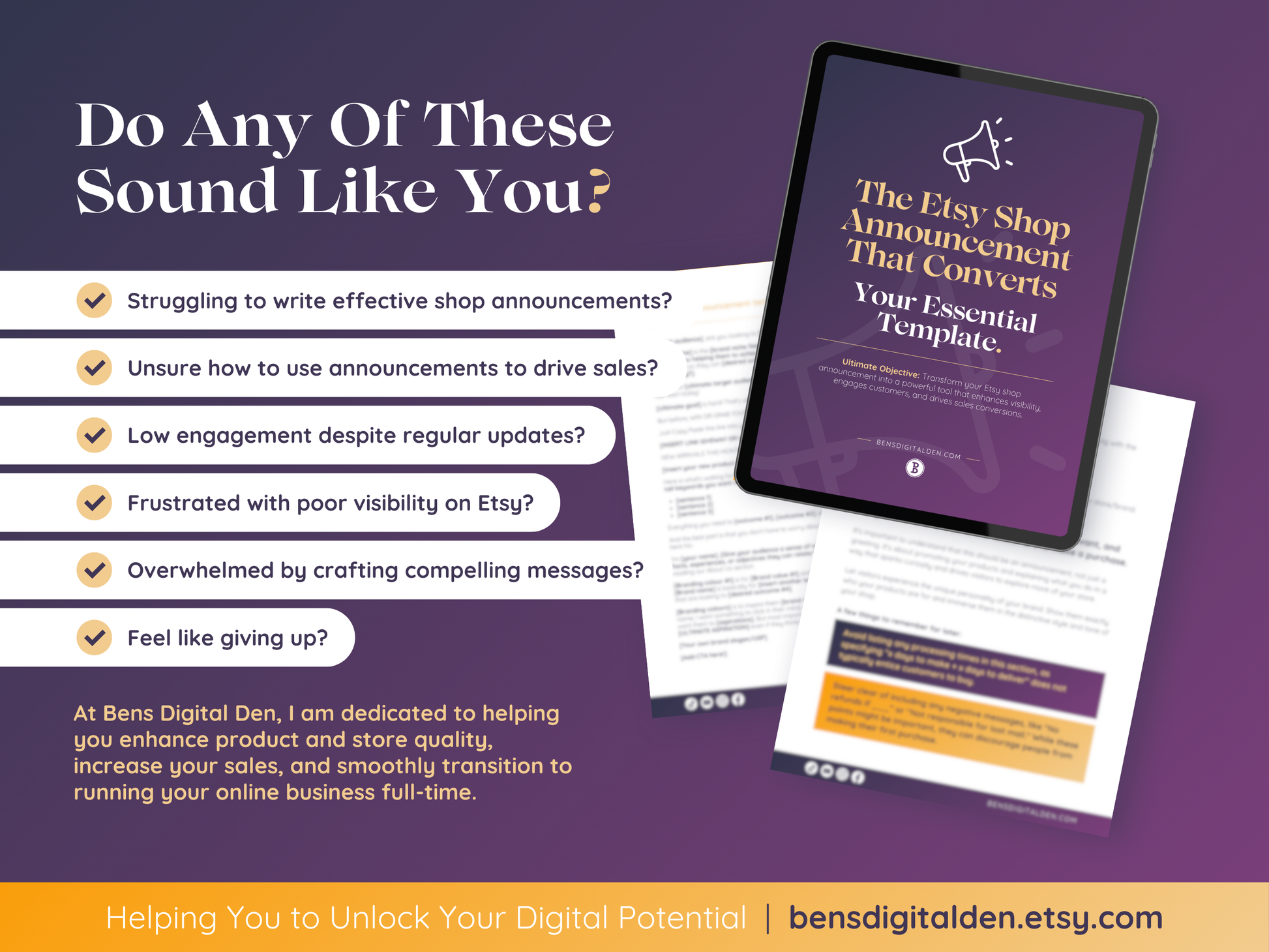 Ready to transform your Etsy shop announcements and boost your sales? Open The Etsy Shop Announcement That Converts and start crafting powerful messages today!