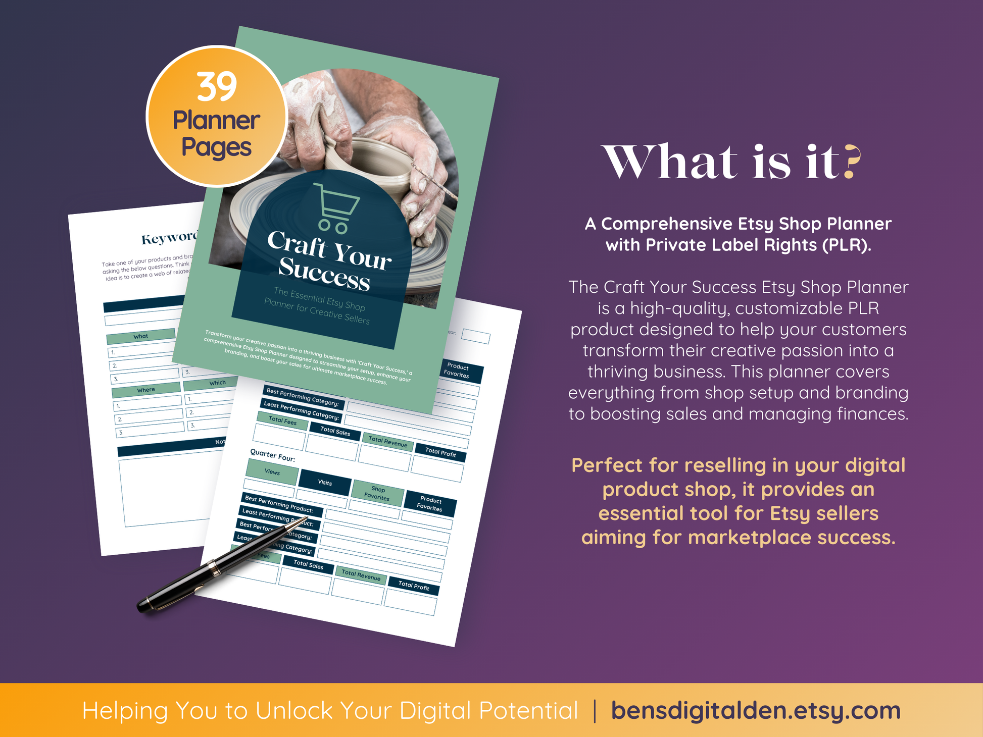 Unlock your potential with the PLR Etsy Shop Planner, a comprehensive resource containing 39 pages designed to guide your journey through managing and growing a successful Etsy shop. This digital product is perfect for small business owners or entrepreneurs looking to start or enhance their own digital product shop on Etsy. With customizable templates available in both US letter and A4 sizes, this Etsy shop planner offers convenience and the opportunity to generate passive income through PLR resell rights.