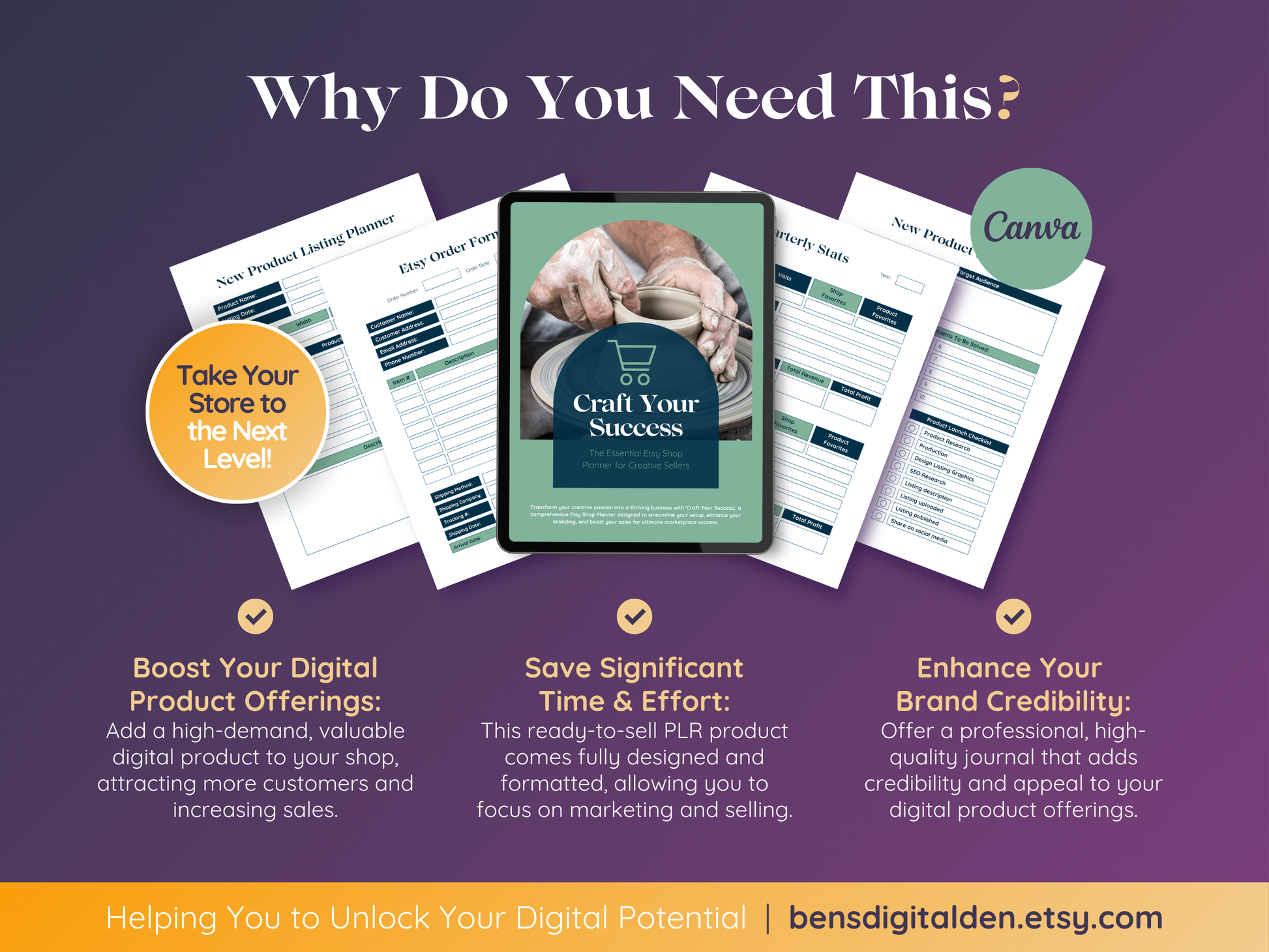 Take control of your Etsy shop journey and your digital marketing business today! Grab the Etsy Shop Planner and start offering a transformative tool to your customers. Click "Add to Cart" now and begin your path to organized shop management, strategic planning, and business success.