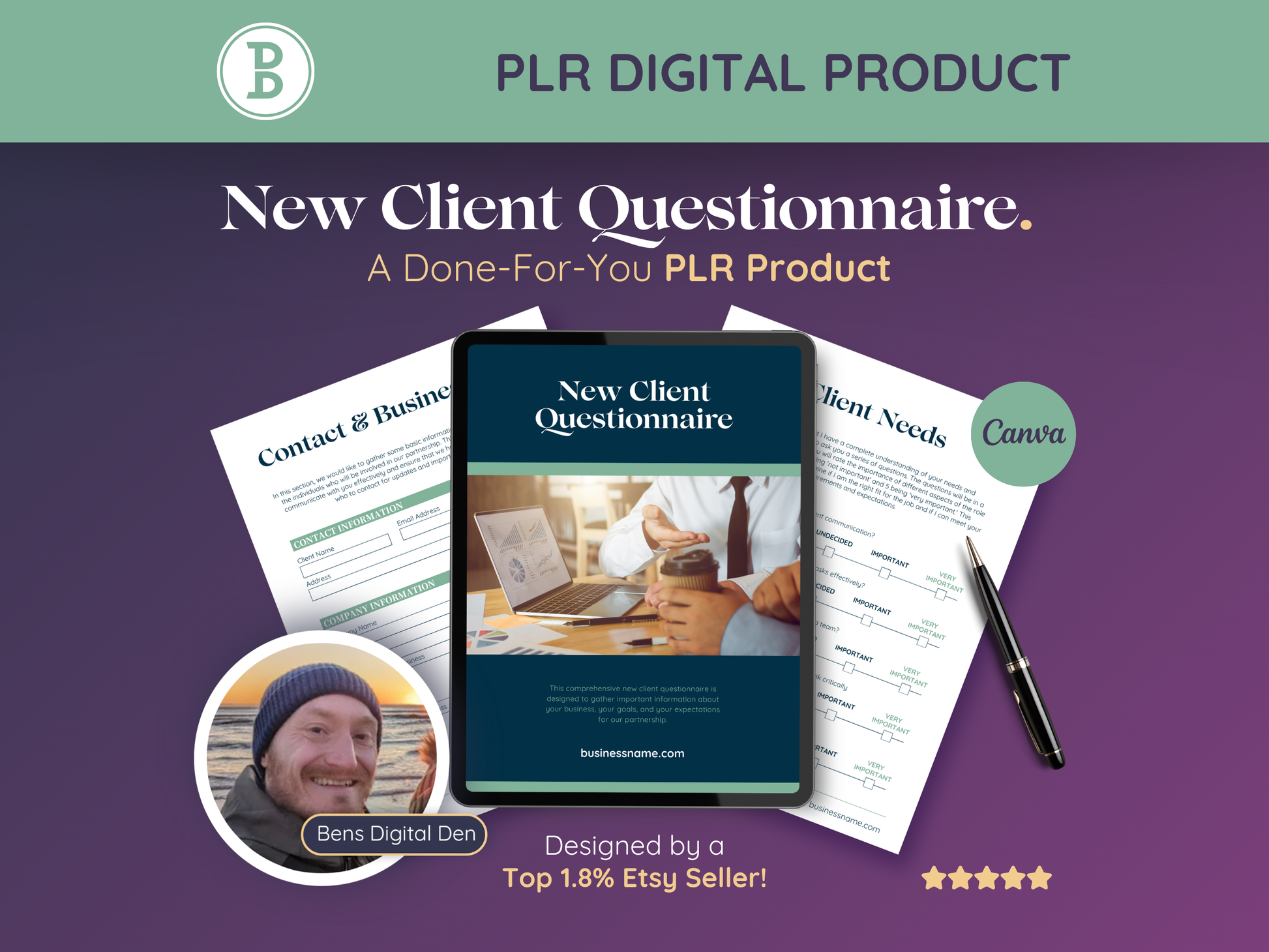 Unlock your potential with the PLR New Client Questionnaire, a comprehensive 13 page resource designed to streamline your client onboarding process and gather essential client information. This digital product is perfect for entrepreneurs, coaches, virtual assistants, and social media managers looking to start or grow their own digital product shop on Etsy. With customizable templates available in both US letter and A4 sizes, this client questionnaire offers convenience and the opportunity to generate passive income through PLR resell rights.