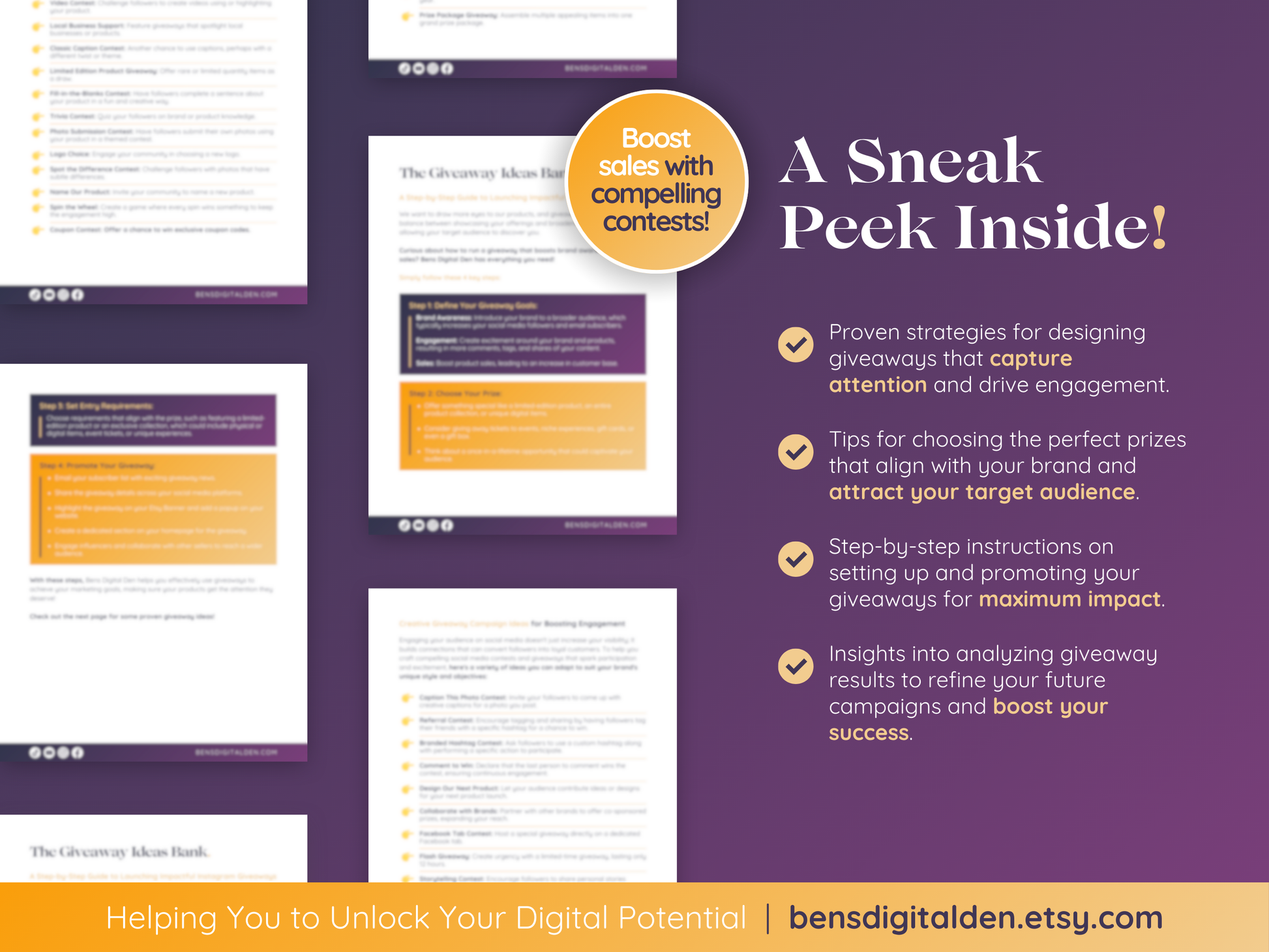 Unlock the potential of your Instagram marketing with The Giveaway Ideas Bank! This guide reveals the secrets to creating compelling Instagram giveaways that drive engagement and accelerate your sales growth. Learn how to design and execute giveaways that captivate your audience, boost your visibility, and convert followers into loyal customers. Whether you're new to Instagram marketing or looking to enhance your current strategy, this guide provides the insights and tools you need to succeed.